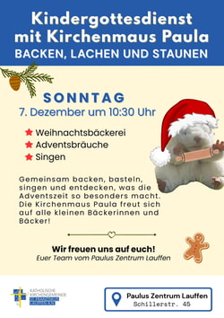 Gemeinsam mit Kirchenmaus Paula entdecken die Kinder spielerisch, was Gott für sie vorbereitet hat: wir singen, basteln, lachen und erleben Geschichten aus der Bibel kindgerecht und lebendig.