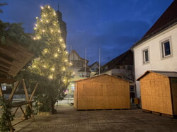 Die fleißigen Mitarbeiter vom Bauhof der Gemeinde Abstatt haben schon den Weihnachtsbaum und das Adventsständle vor dem Rathaus aufgebaut.